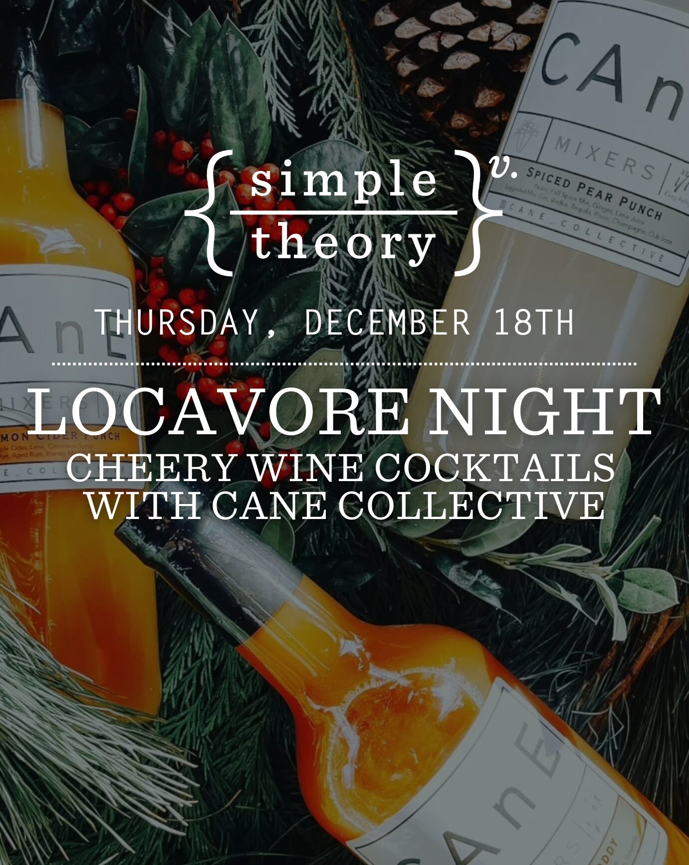 This month, we’re in a celebratory mood as we gear up for the holiday season—and what says celebration better than a great cocktail? We’re teaming up with the crew at CAnE Collective to craft three wine cocktails perfect for all your festive moments – one red, one white, and of course, one sparkling! Join us for the final Locavore of the year and learn how to mix these spectacular creations featuring freshly made mixers with our estate-grown Maryland wines for the perfect seasonal sip.